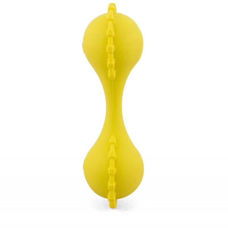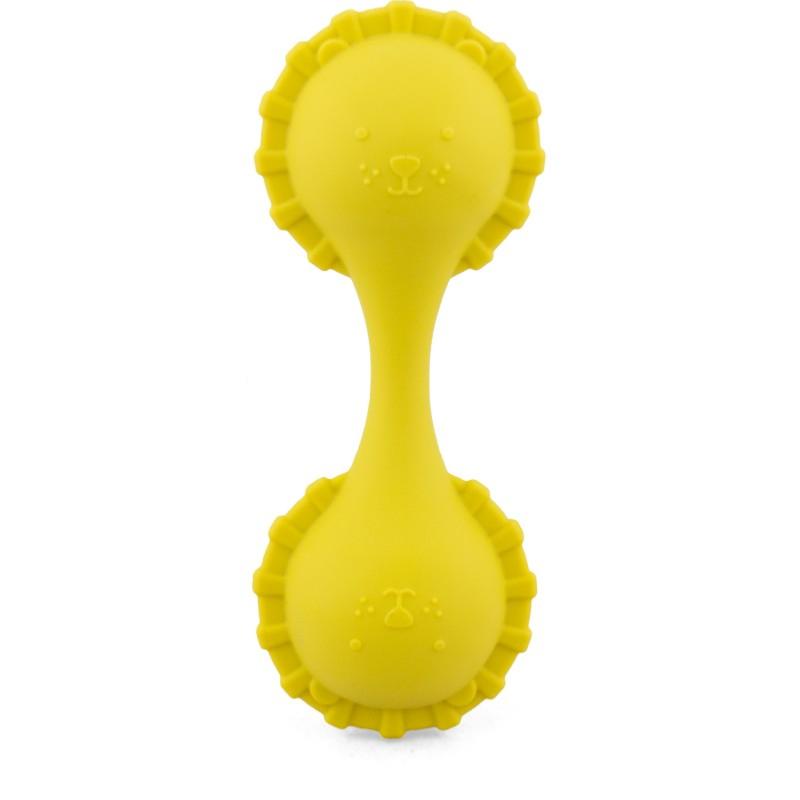 Hochet en forme de maracas double en silicone souple et facile à prendre en main par les tout-petits.