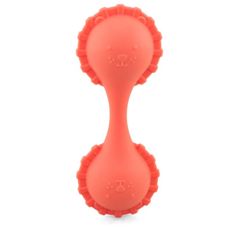 Hochet en forme de maracas double en silicone souple et facile à prendre en main par les tout-petits.