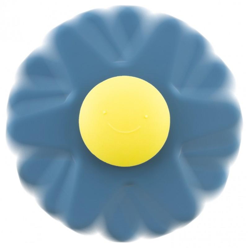 Jouet en silicone souple muni d'une ventouse adhérant sur toutes les surfaces lisses.