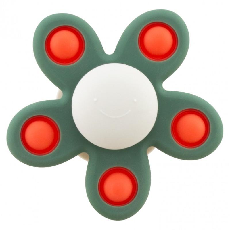 Fleur en silicone de 5 pétales équipées de petites excroissances en dômes à leurs extrémités qui lorsqu'ils sont pressés émettent un petit son : "pop, pop"... La ventouse ajustable s'adapte à toutes les surfaces lisses.
