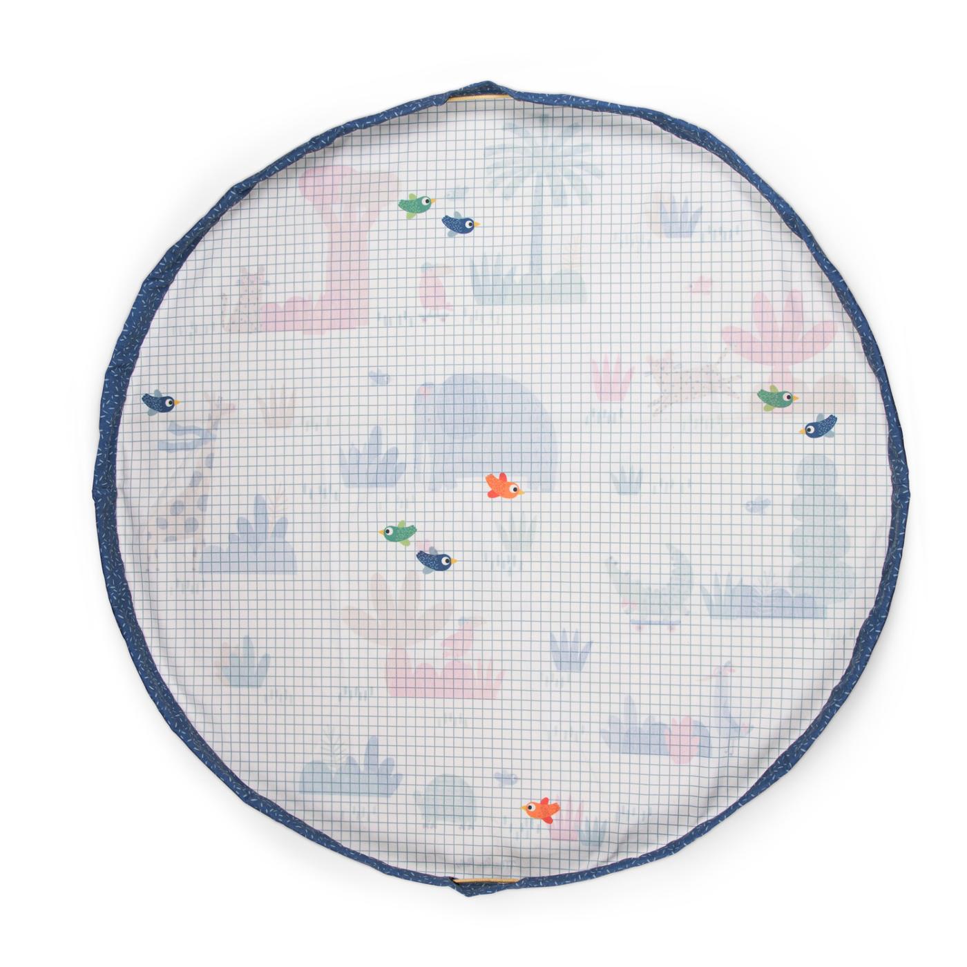 Voici un joli tapis de jeu au décor de la série des animaux "les toupitis" qui se transforme en un clin d'œil en sac à jouets très pratique pour les déplacements chez la nounou ou pour passer un quelques jours en famille.